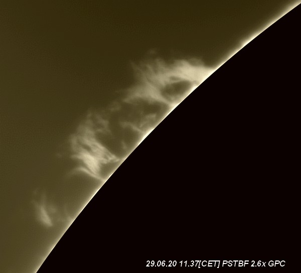 11.20 Nice prom at 11 o'clock NE. Swapped over to the PST BF for less gain and lower noise. 2.6 x GPC for scale. The wind is blowing around in the dome.
