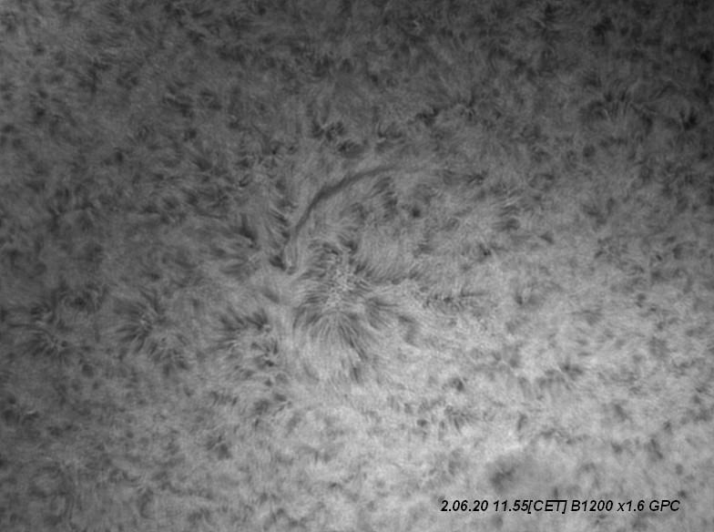 11.12: First and only image: Yuk! Over-sharpening by AS!3 before ImPPG? How does that work? The PST etalon is showing its stripes too. The so-called "sweet spot" can sometimes be tuned out by judicious waggling of the inner etalon tuning ring. Though I really don't recommend it.